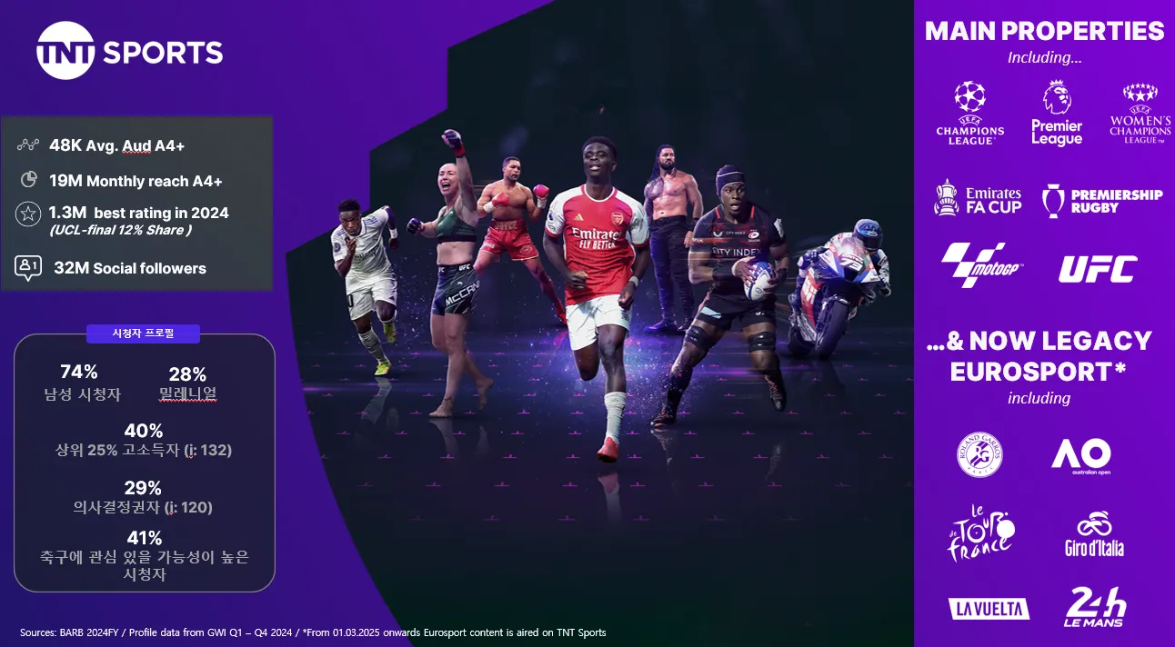 3) 올림픽 공식 중계 채널이며 EUROSPORT를 비롯한 다수의 스포츠 매체 보유